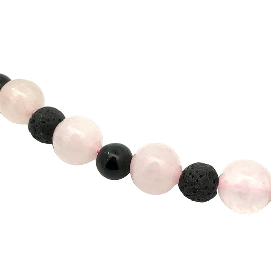 Rosenquarz - Onyx - Lava - Halskette L: 50 cm in Silber 925