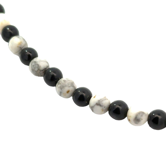 Schwarzer Onyx - Howlith Halskette L: 50 cm in Silber 925
